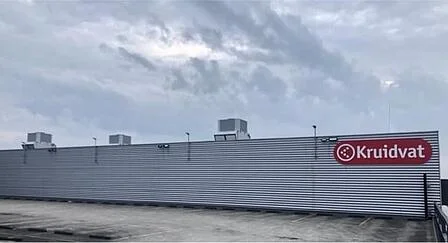 A Kruidvat Ede e-kereskedelmi disztribúciós központjában 6 IntrCooll készüléket telepítettünk. Az IntrCooll egységek természetes szellőző modulokkal vannak felszerelve, melyekre kifolyót és hővisszanyerő egységet építettek, hogy téli időszakban is megoldható legyen a szellőztetés.